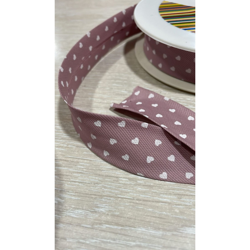 Cinta al bies de algodón estampada con corazones